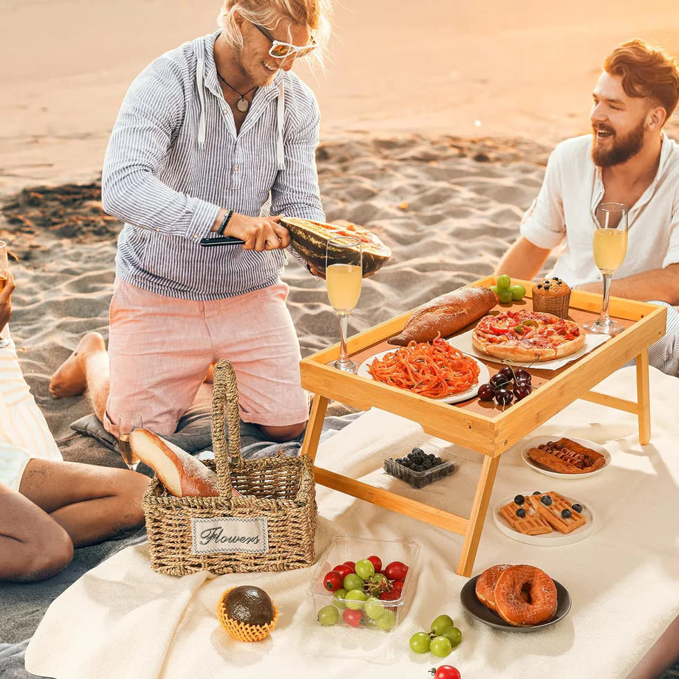SAVE SPACE & TRANSPORTED EASILY: This sturdy breakfast bed tray is also portable and very easy to storage due to its folding table legs. The lightweight desgin can make you easy to carry wherever you want. This is a best choice for your daily activities.